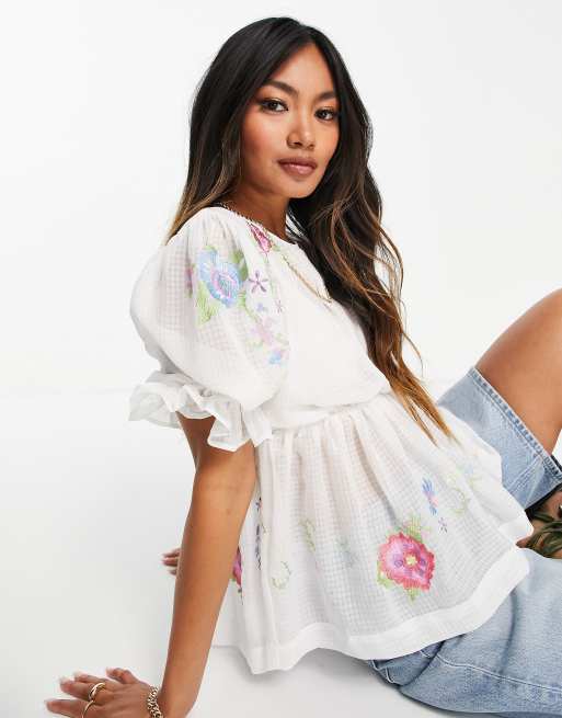 Embroidered top store asos